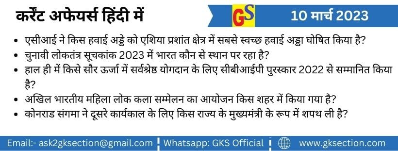 Current Affairs in Hindi – 10 March 2023 General Knowledge in Hindi