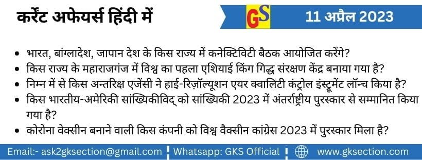 Current Affairs in Hindi – 11 अप्रैल 2023 General Knowledge in Hindi